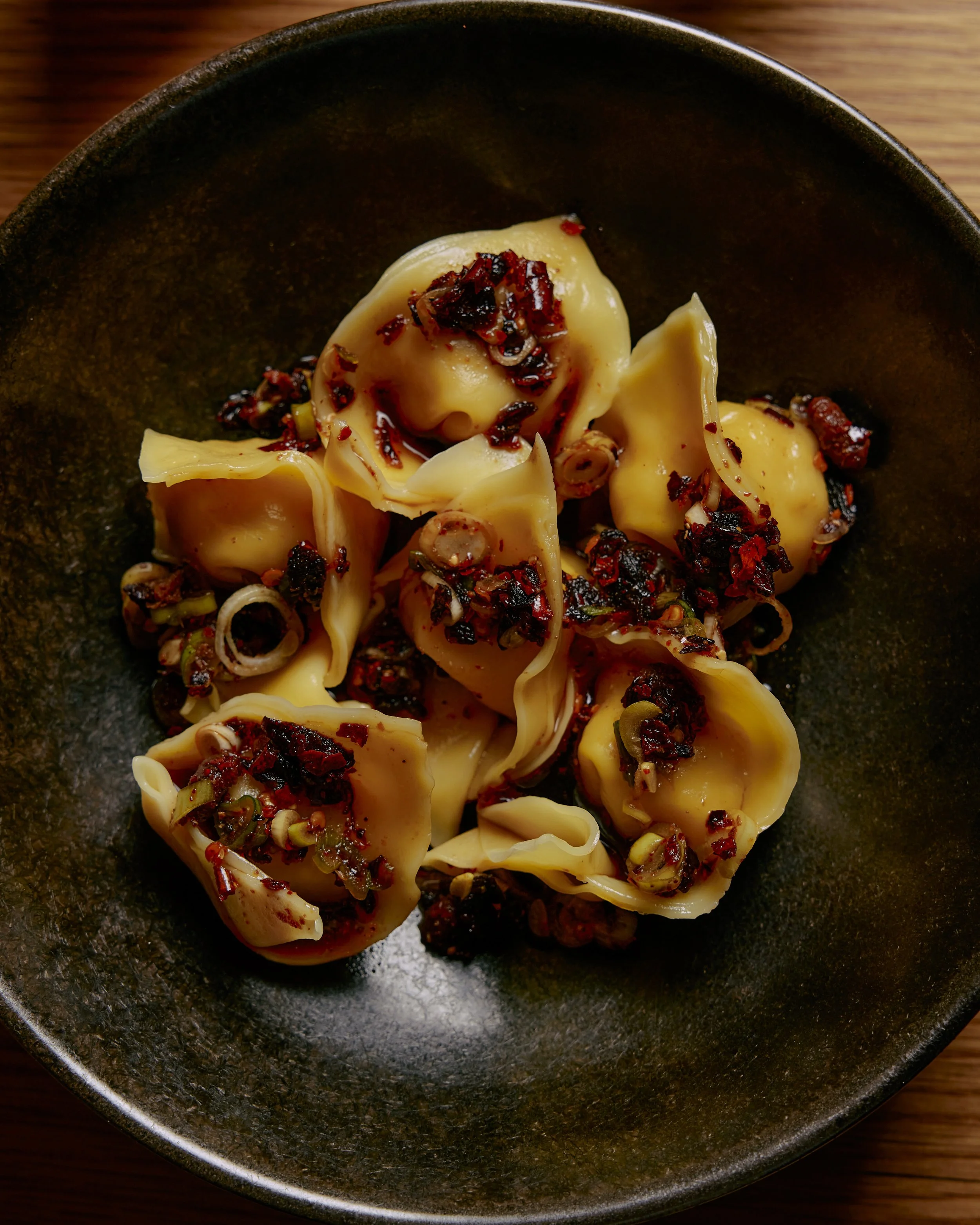 PRAWN & CHICKEN DUMPLINGS, CHILLI & VINEGAR